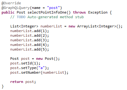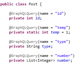 Graphql로 Post 데이터의 하위 id/temp/number 변수값들을 질의할 때 사용하게 된다. 쿼리와 자바 변수 사이의 맵핑(Mapping)단계라고 생각하면 된다.