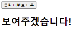 화면 첫 로딩 시, default true로 되어있기 때문에 출력되는 것을 알 수 있다. 이 상태에서 "클릭 이벤트 버튼"을 누르게 되면,