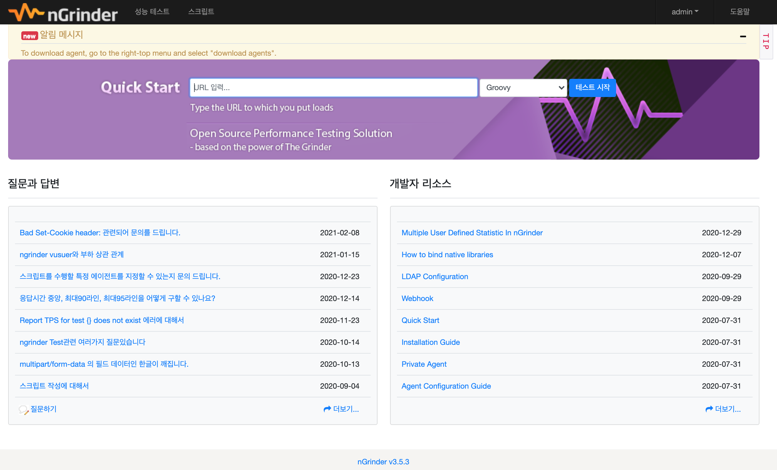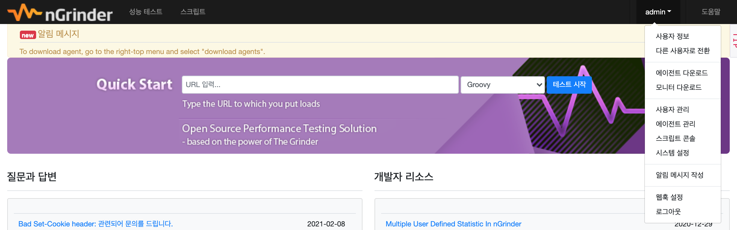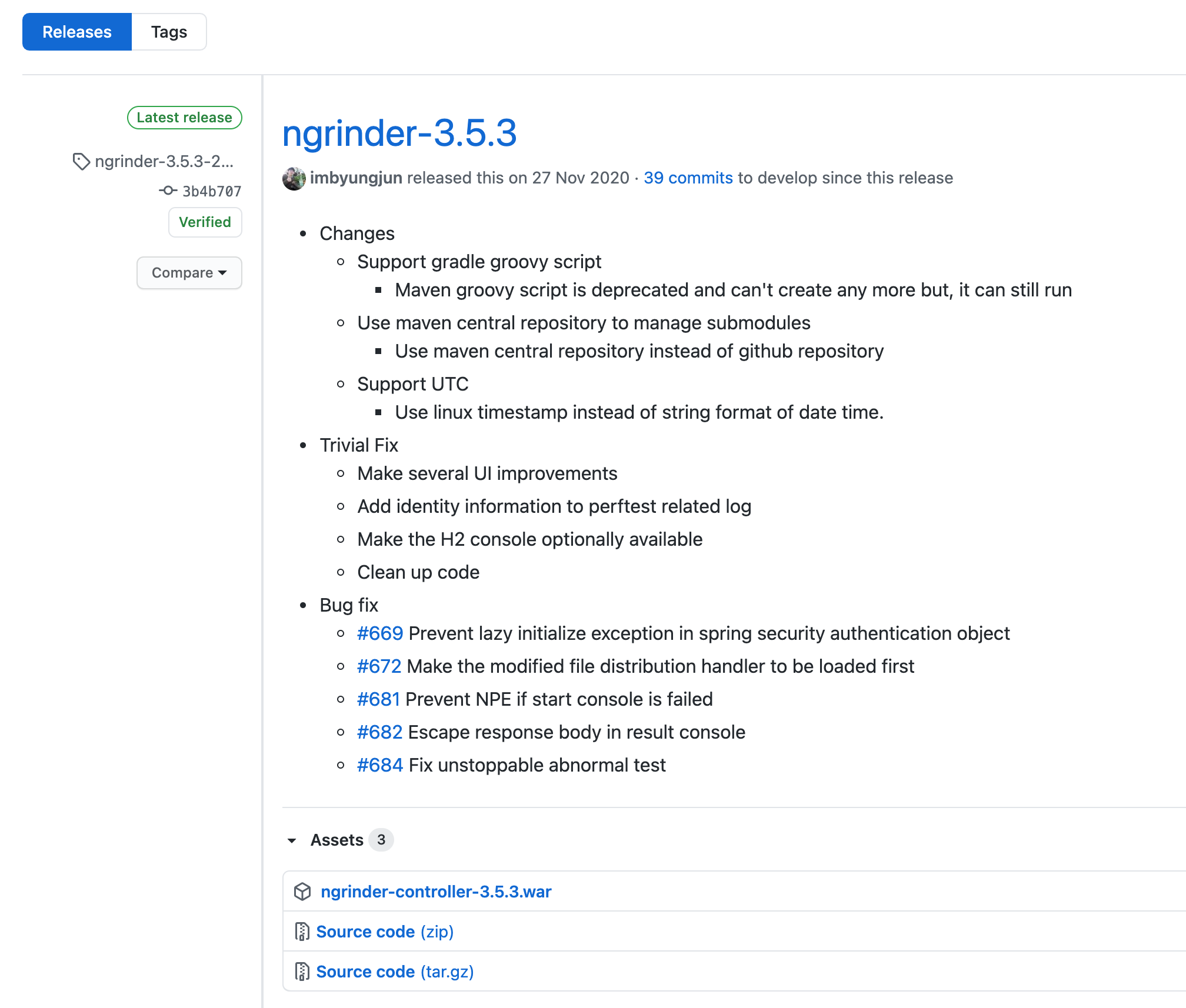 nGrinder 또한 github에 공개되어 있고, 단독 실행 가능한 war 파일로 버전 별로 공개되어있다.