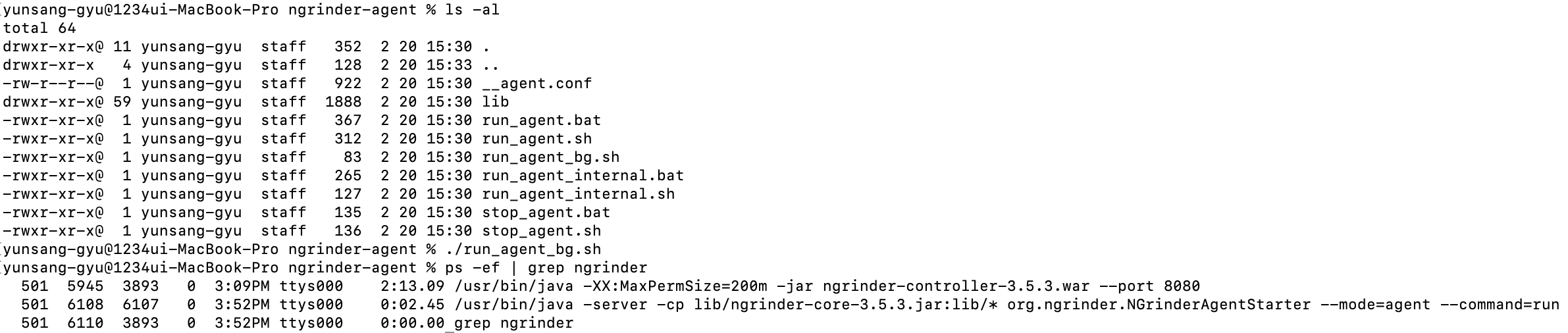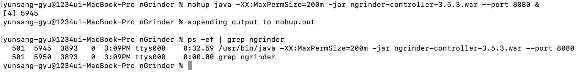 예시) nohup java -XX:MaxPermSize=200m -jar ngrinder-controller-3.5.3.war --port 8080 &