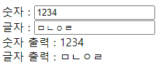 데이터 모델 numberModel, textModel을 입력받고 바로 아래에 출력하도록 하였다.